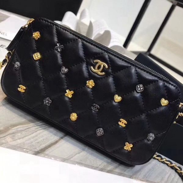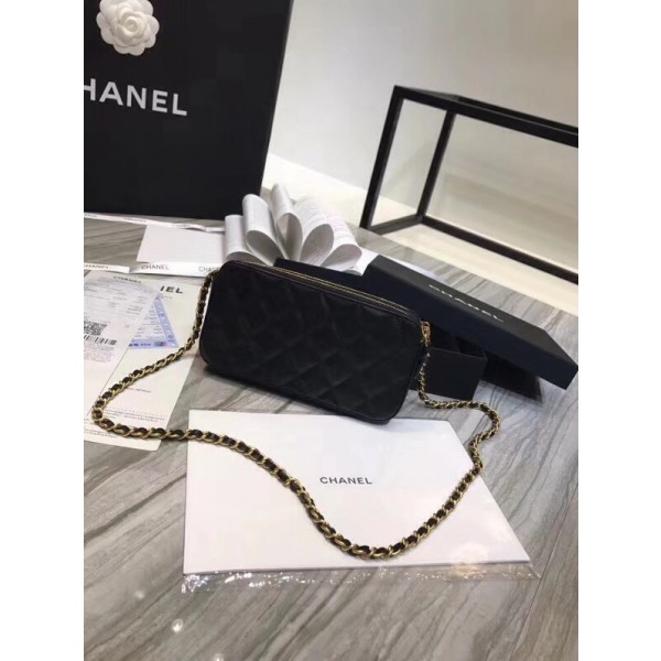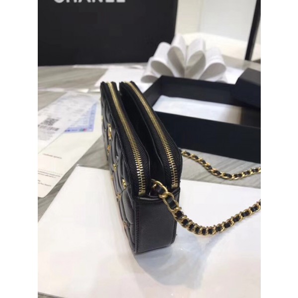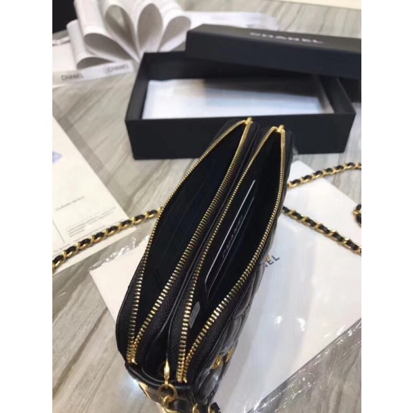 • 샤넬 램스킨 18k 챔스 Double Zip 파우치 with 체인 블랙 2018