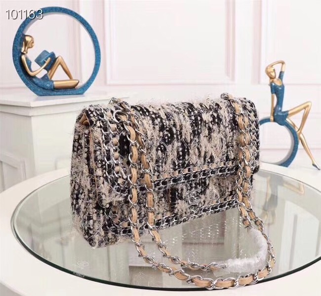 • 샤넬 트위드 우븐 스트로우 클래식 플랩 백 블랙 베이지