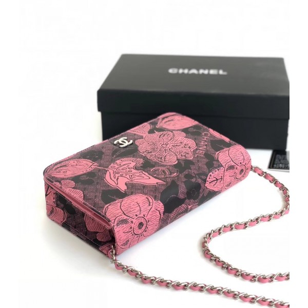 • 샤넬 프린트  램스킨 월릿 온 체인 WOC 백 핑크