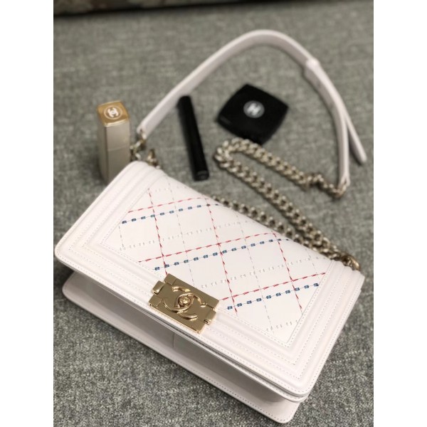 샤넬 엠보 보이 미디엄 플랩 백 화이트