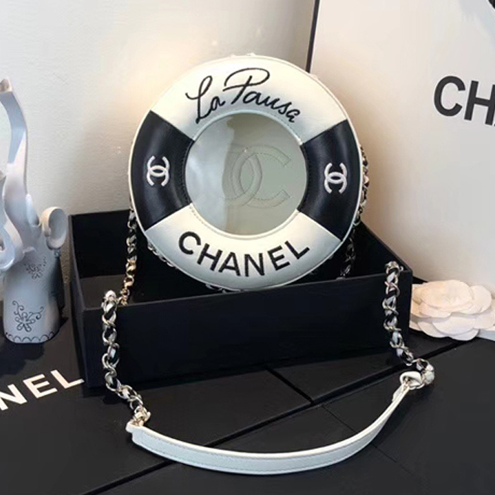 샤넬 As0209 램스킨 엠보 패턴 스몰 라운드 백 블랙 화이트 > 가방