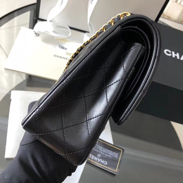 • 샤넬 A01112 18k 챔스 미디엄 클래식 플랩 백 블랙 골드