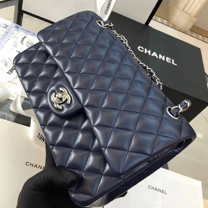 • 샤넬 퀄팅 램스킨 플랩 백 블루 2018