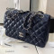 • 샤넬 트위드 우븐 스트로우 클래식 플랩 백 네이비 블루