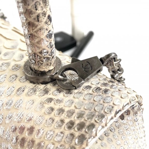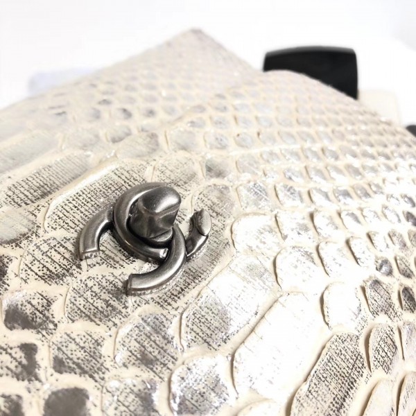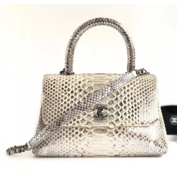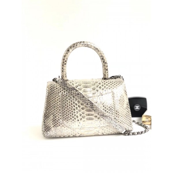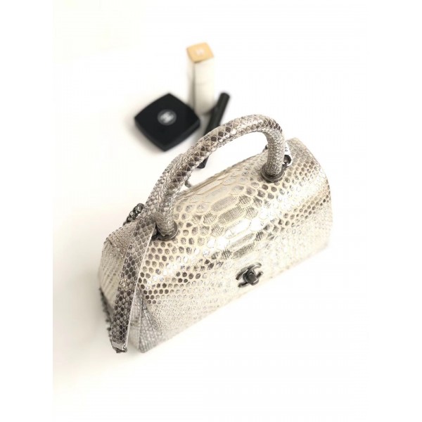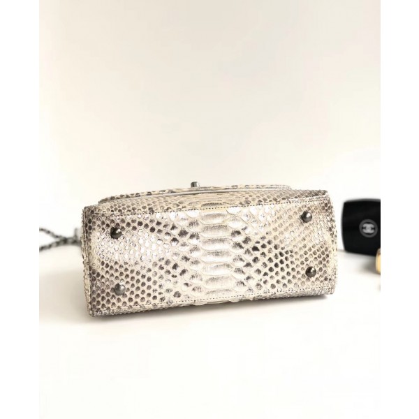 샤넬 파이썬 플랩 백 탑 핸들 백 그레이