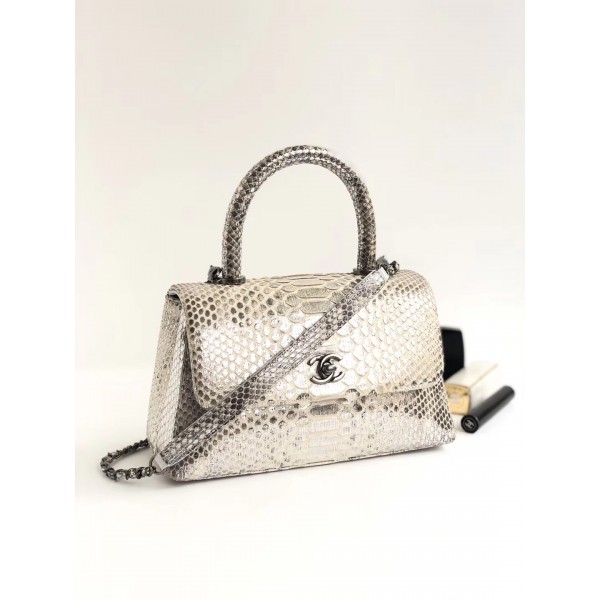 Chanel-python-flap-bag-with-top-handle-bag-grey