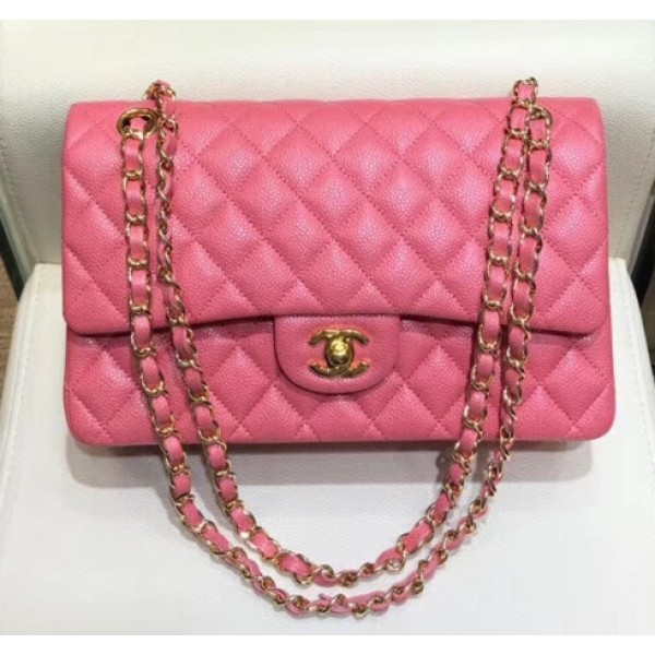 Chanel-grained-caflskin-medium-classic-flap-bag-a01112-pink-with-gold-hardware
