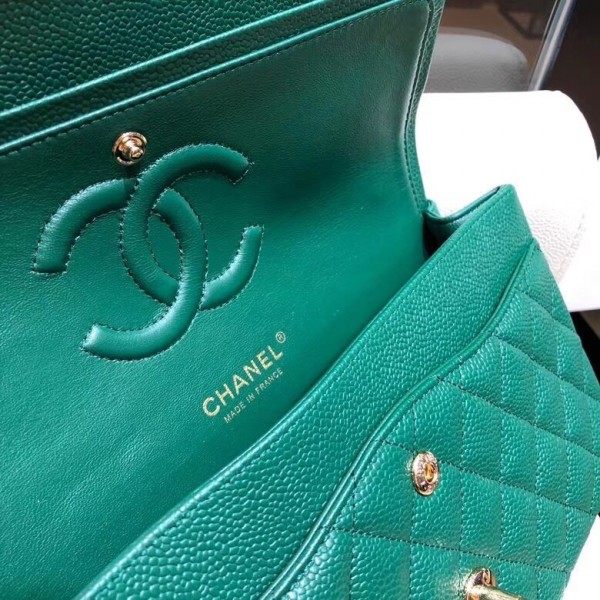 Chanel-grained-caflskin-medium-classic-flap-bag-a01112-green-with-gold-hardware