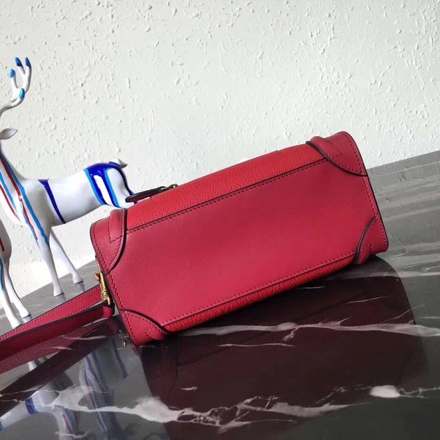 Celine original grained&smooth calfskin nano luggage bag 189243 red