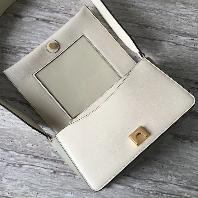 • 셀린느 77427 카프스킨 생글 미디엄 버켓 백 화이트