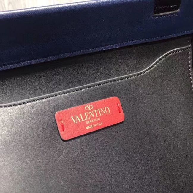 VALENTINO Rockstud grained leather shopper bag V2052 dark blue