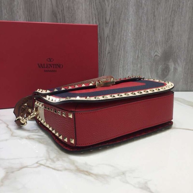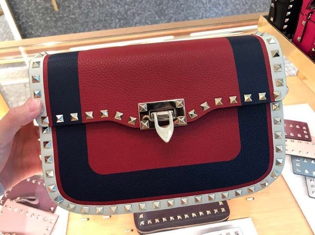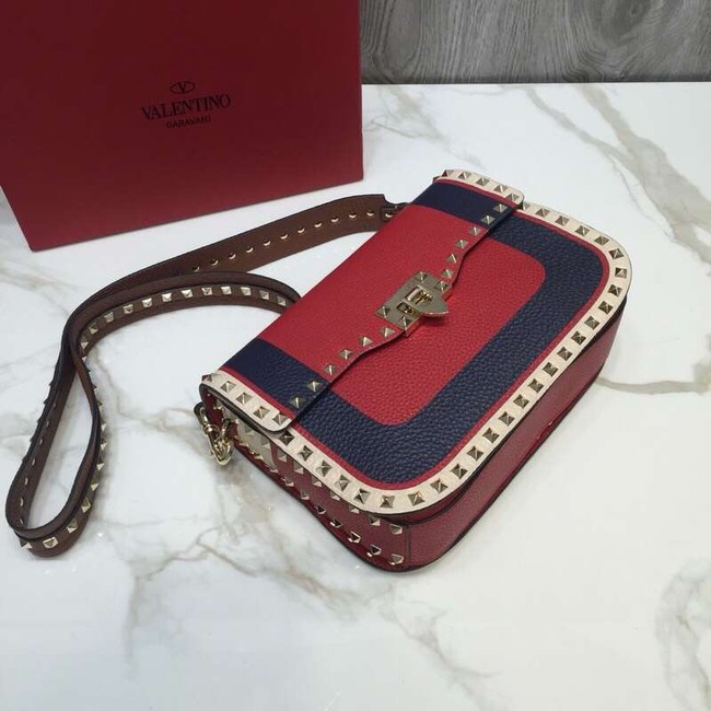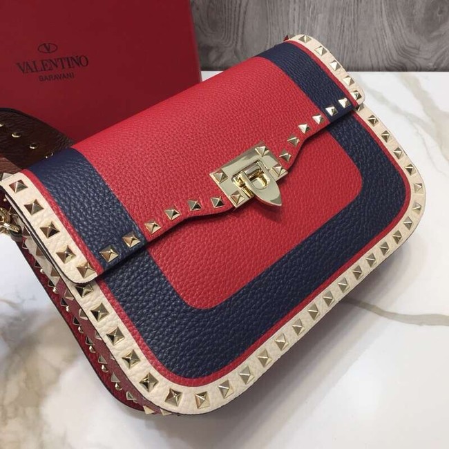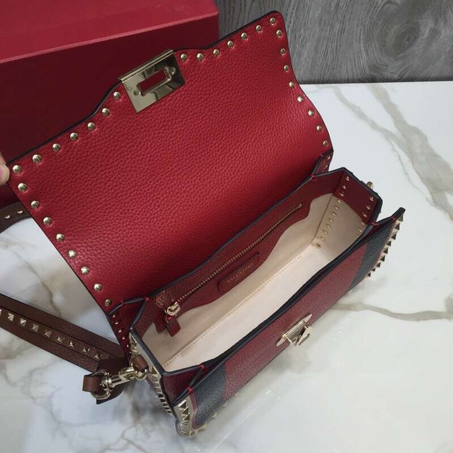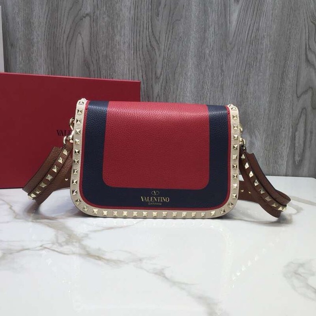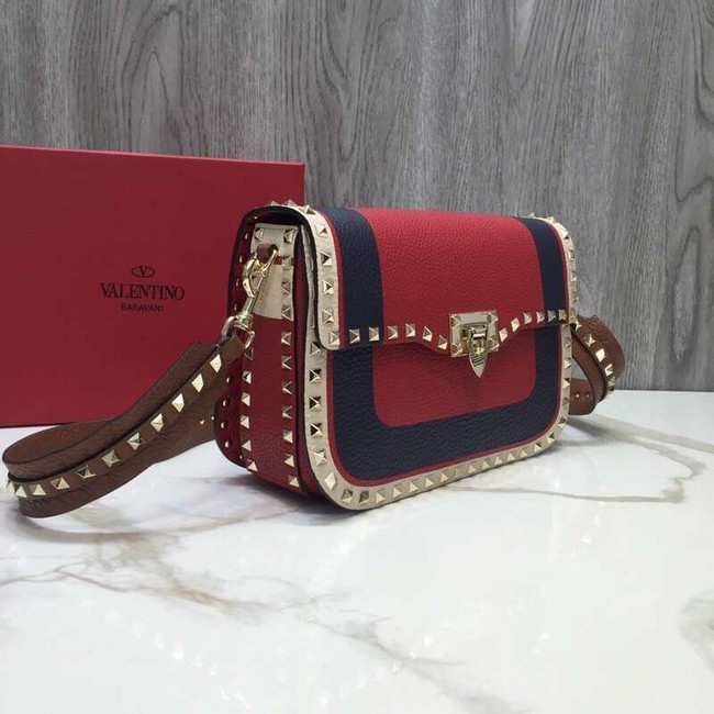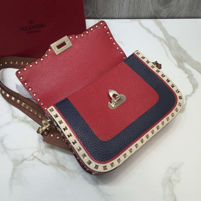 VALENTINO Rockstud grained leather messenger 0937B Blackredwhite