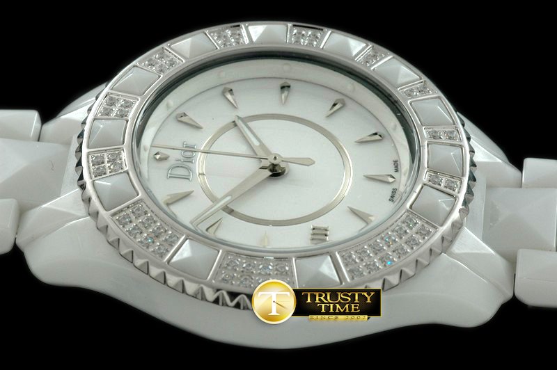 CHRISTIAN DIOR Dior VIII Mid Size Cer/Cer/Diam White Jap Quartz