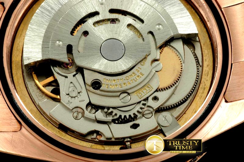 | 밴드 소재 | 18K Rose Gold Plated Bracelet (Choice of Jubilee Oyster or President Select under Options) with 싱글 폴드 Over Insignia Clasp Engraved Rehaut |