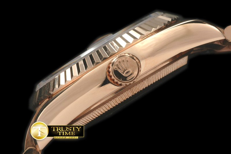| 밴드 소재 | 18K Rose Gold Plated Bracelet (Choice of Jubilee Oyster or President Select under Options) with 싱글 폴드 Over Insignia Clasp Engraved Rehaut |