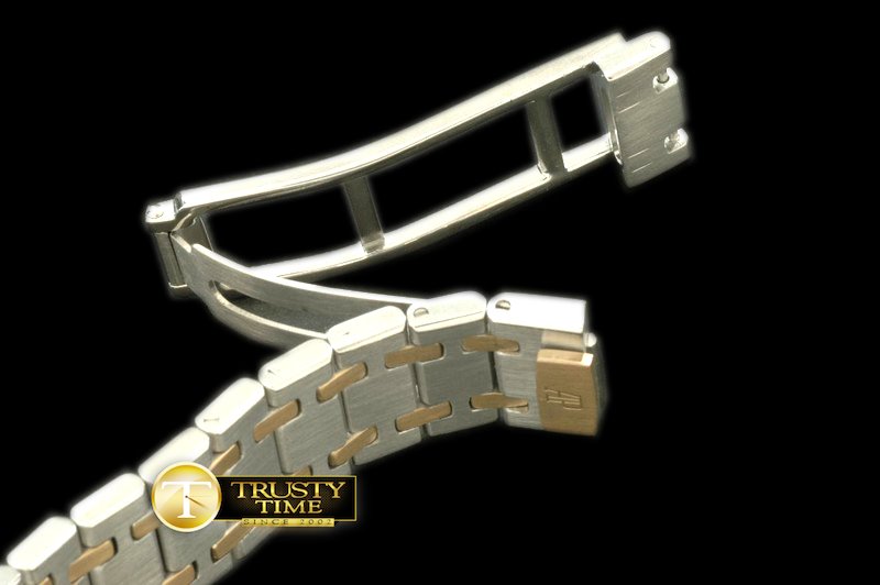 | 밴드 소재 | 고강도 스텐레스 스틸 316F (피부트러블이나부식없음)/18K Chagne Gold Two Tone Bracelet with Deployant Clasp |