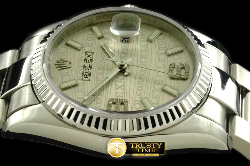 | 다이얼 컬러 | Silver Insignia Dial Superlume Stick Hour Markers and Needles Genuine Diamonds Crested 6 and 9 Markers |