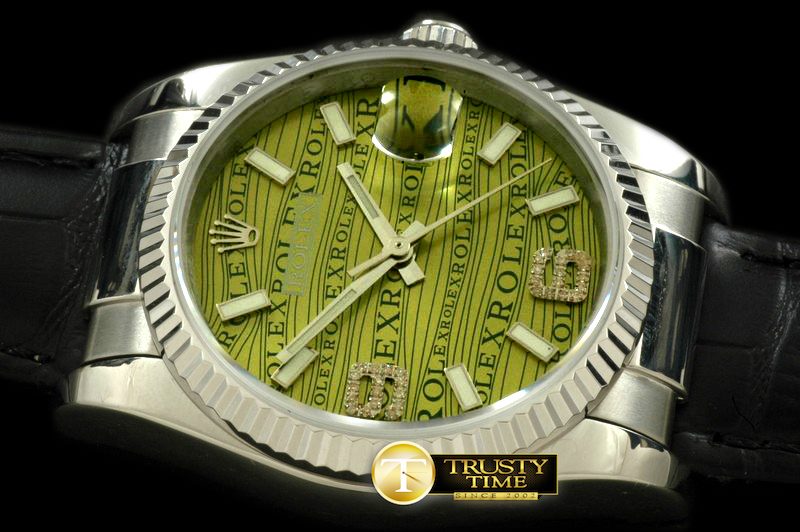| 다이얼 컬러 | Khaki Green|Insignia Dial Superlume Stick Hour Markers and Needles Genuine Diamonds Crested 6 and 9 Markers |