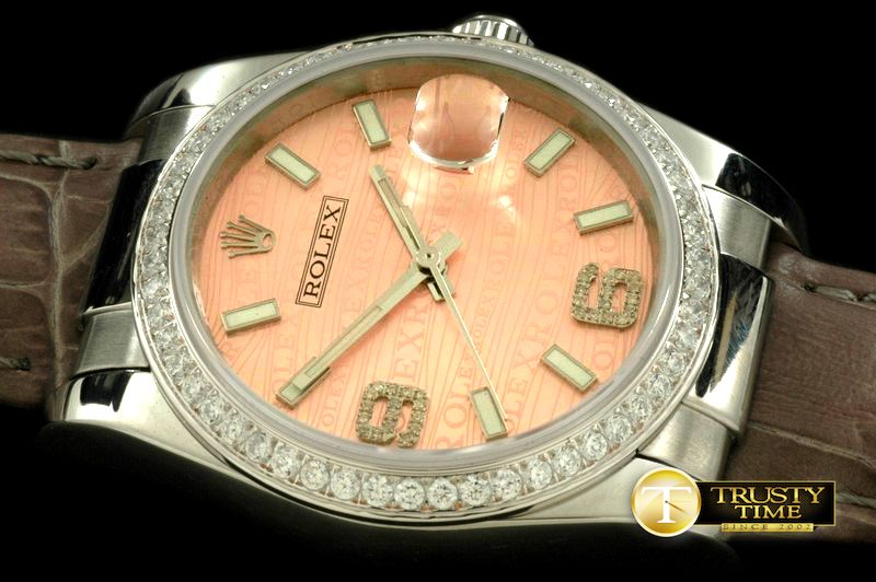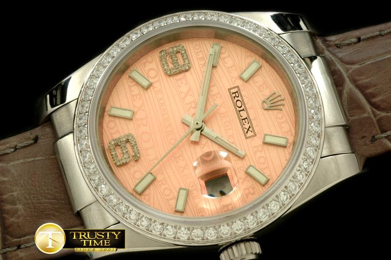 | 다이얼 컬러 | Salmon|Insignia Dial Superlume Stick Hour Markers and Needles Genuine Diamonds Crested 6 and 9 Markers |
