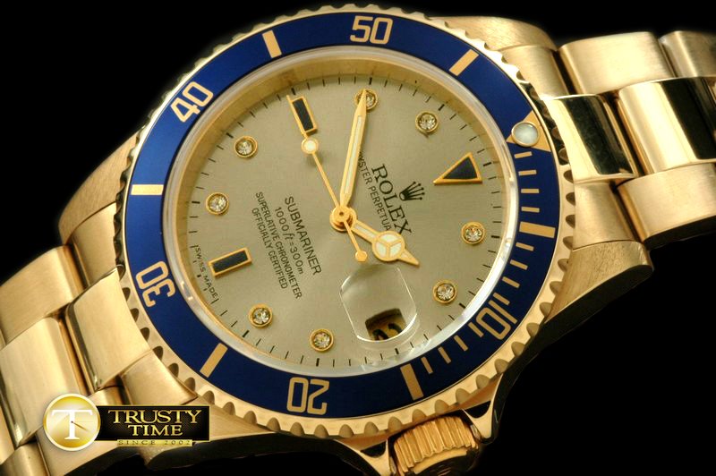 | 특징 | The 16619 Classic Full Gold Submariner!! Ultimate Supreme Version!! Superlume!! The Most Accurate Classic Submariner Made to Date M Serial Numbers Glass Clad over Pearl as per the Genuine. This is made with Reference to a Genuine 16610 Submariner Watch External Dimension is 1 : 1 against the Genuine All External Parts are interchangeable with Genuine. |