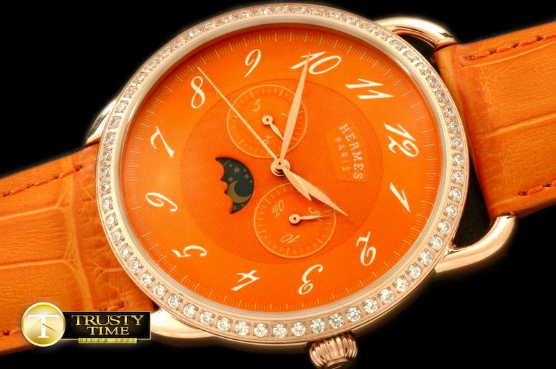 HERMES Arceau Calendar RG/LE Orange Jap Quartz
