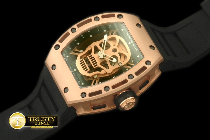 RICHARD MILLE Skull Tourbillon RG/RU Black Asian 21J Decorated Movt