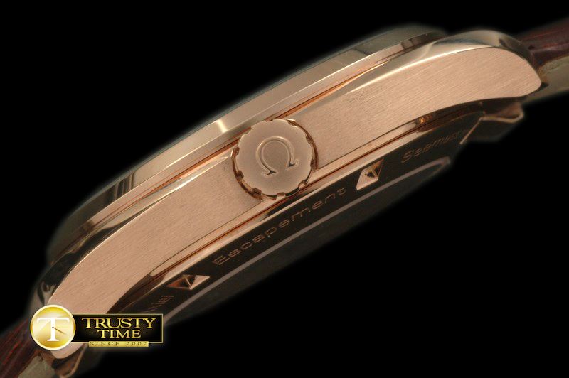 다이얼 컬러 Brown Tuxedo Dial |Rose Gold Plated|Steel Hands| Steel Arrow markers |Correct Omega logo - No Happy Feet |Blue Superlume on Hour Markers and Hands