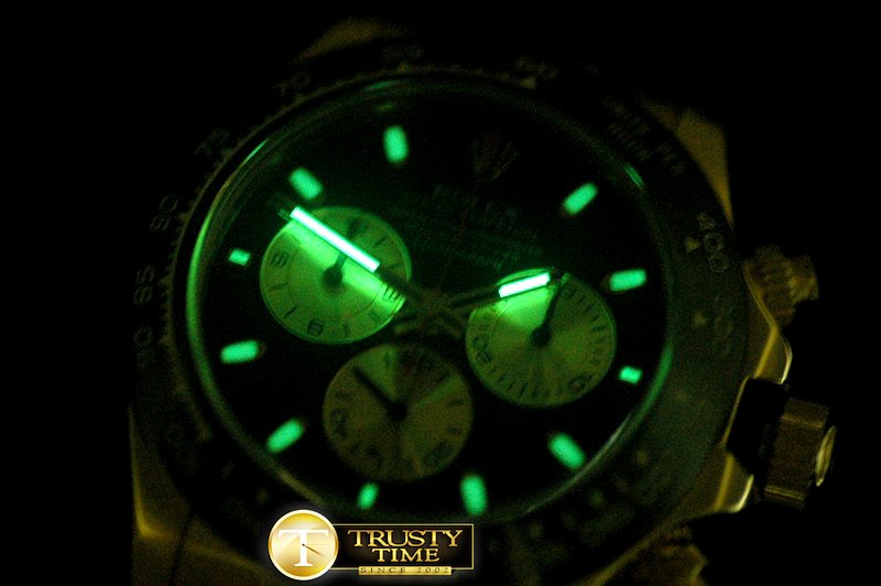 | 다이얼 컬러 | Black Dial Gold Subdials with Superlume Stick Markers and Needles |