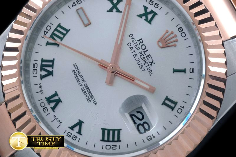 | 다이얼 컬러 | White Dial Printed Green Roman Markers with Diamond Crested Oversized VI Markers |
