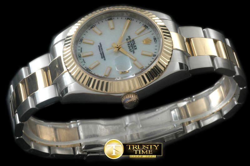 ROLEX SS/YG Oyster Fluted MWhite Sticks Asian Eta 28362