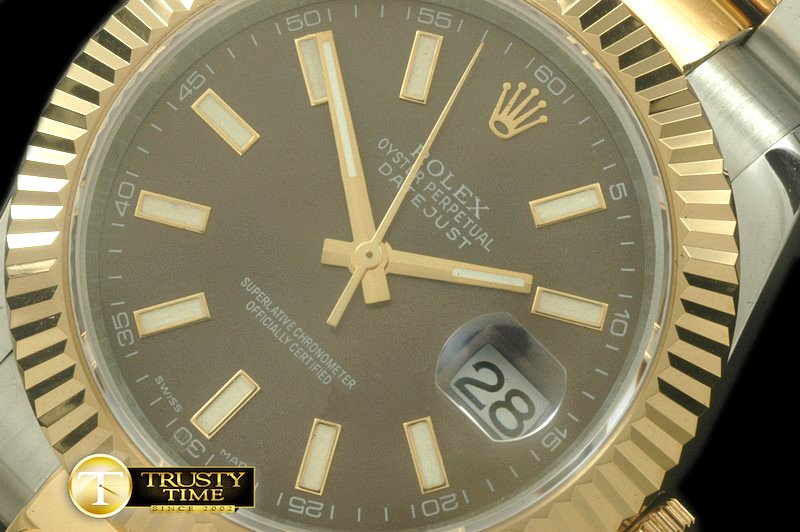 ROLEX SS/YG Oyster Fluted Grey Sticks Asian Eta 28362