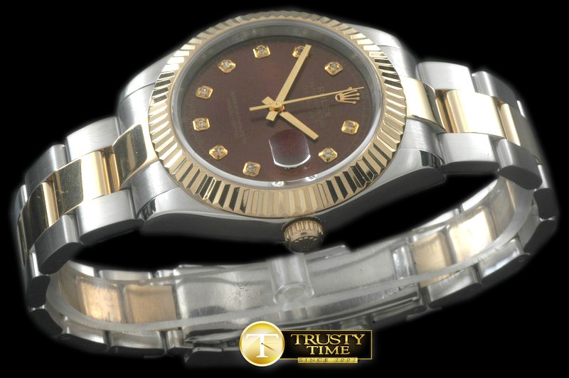 ROLEX SS/YG Oyster Fluted Brown Diam Asian Eta 28362