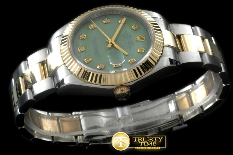 ROLEX SS/YG Oyster Fluted MGreen Diam Asian Eta 28362