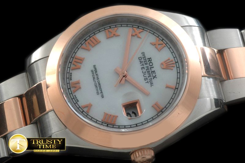 ROLEX SS/RG Oyster MWhite Roman Asian Eta 28362