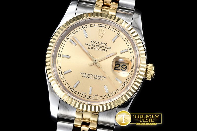 ROLEX DateJust Gold Stick YG/TT Jub BP Asia 2836