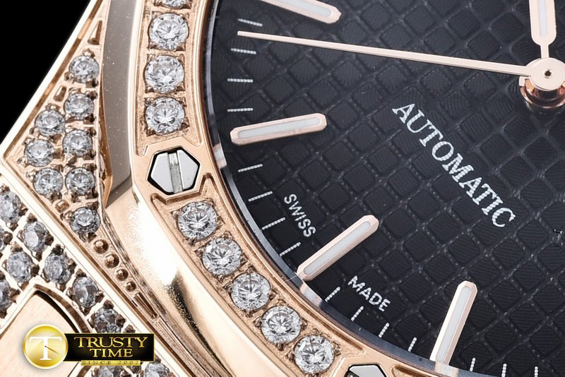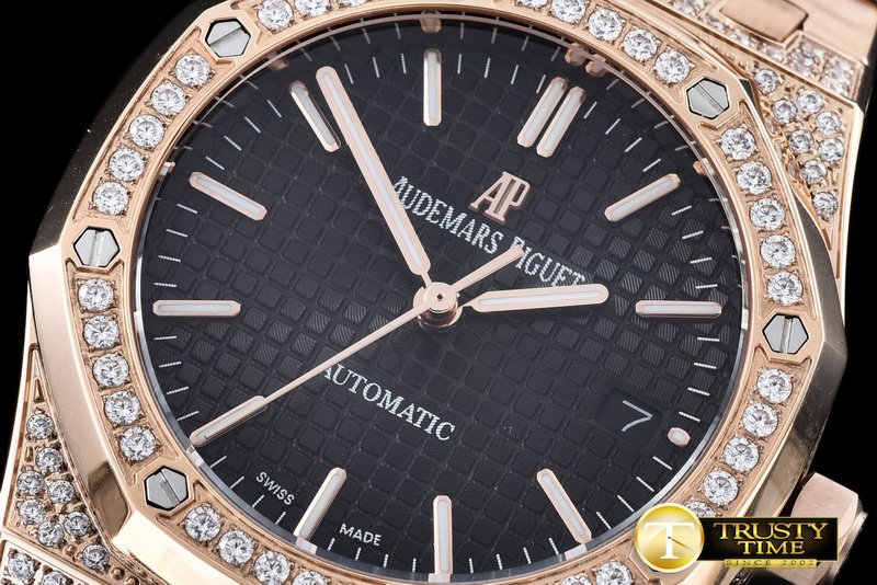 | 무브먼트 종류 | Nickle Plated Japanese Miyota 9015 Automatic Movement 28800bph High Beat Custom Gold Plated Decorated AP Insignia on Rotor| Modded to AP 3120 Calibre Bridges |