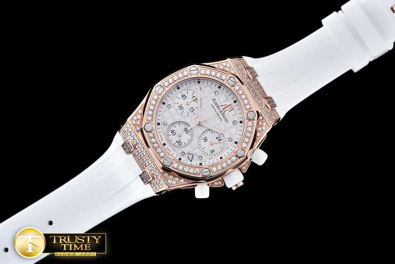 AUDEMARS PIGUET Royal Oak Ladies Chrono RG/RU Wht Diam Diam Bez VK64