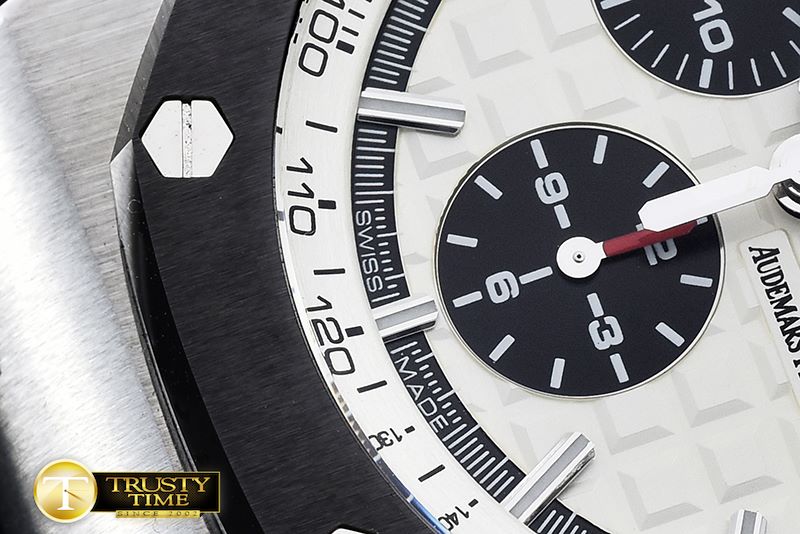 | 무브먼트 종류 | Base Movement : Asian 7750 automatic chronograph movement secs @12 at 28800vph Decoration : Platinum plated movement plate and rotor which are made according to the genuine movement the best looking AP Calibre 3126 Movement Clone at the moment. |