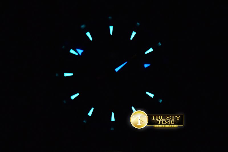 다이얼 컬러 White|Dial |Steel Hands| Steel Arrow markers |Blue Superlume on Hour Markers and Hands