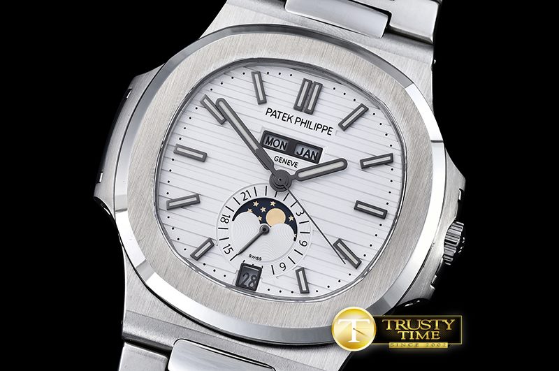 PATEK PHILIPPE Nautilus GMT MoonPhase SS/SS White Asia 23J Calendar
