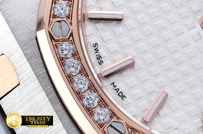 • 오데마피게 Royal Oak Ladies Diams 33mm RG/RG Wht JF Swiss Quartz -AP0407B