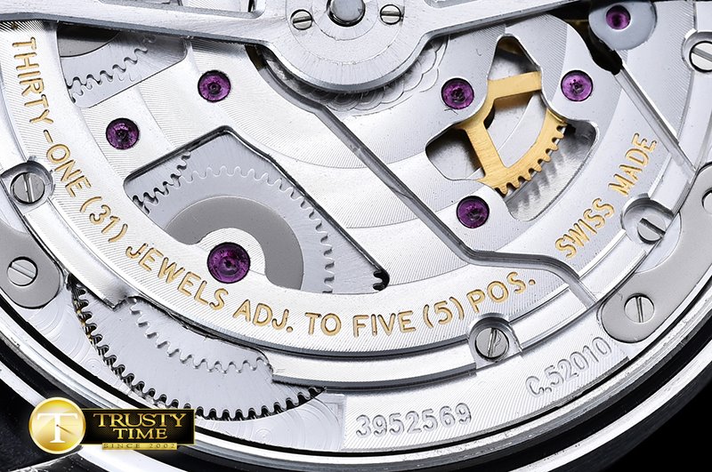 | 무브먼트 종류 | Asia Clone A52010 Automatic movement with Functional Power Reserve Platinum Plated Bridges and Decorated Rotor with Insignia |