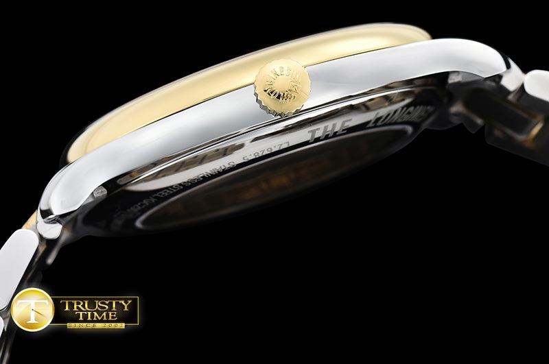 | 밴드 소재 | Two Tone 18K Yellow Gold Thick Plated (5 mils) on 고강도 스텐레스 스틸 316F (피부트러블이나부식없음) with Deployant Clasp |