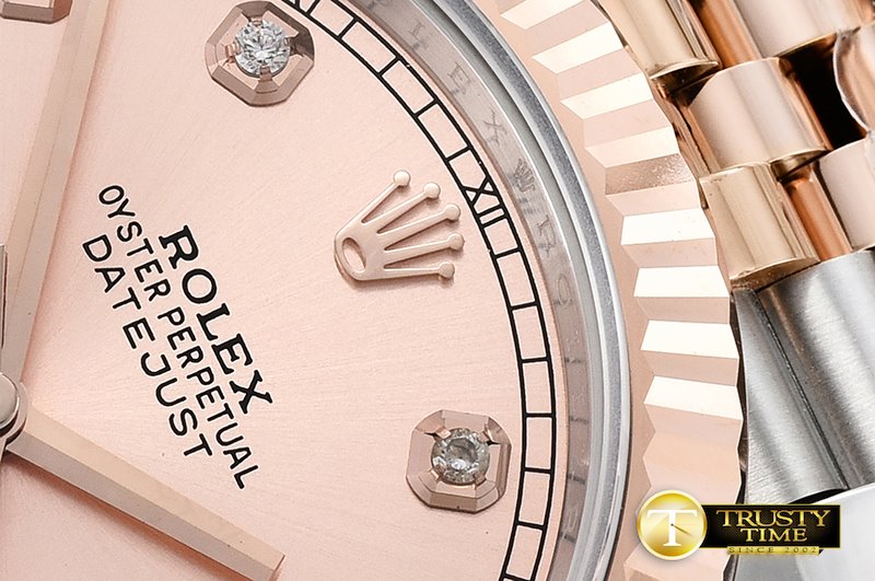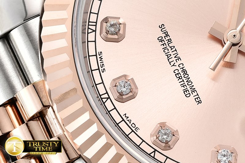 | 다이얼 컬러 | Rose Gold Dial with Diamond Markers (With Superlume in Blue Applied - Swiss Standards) |