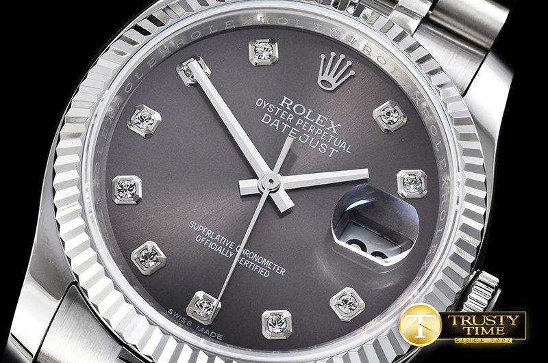 ROLEX DateJust Jub Flt SS/SS Dark Grey Diam BP A3135 Mod