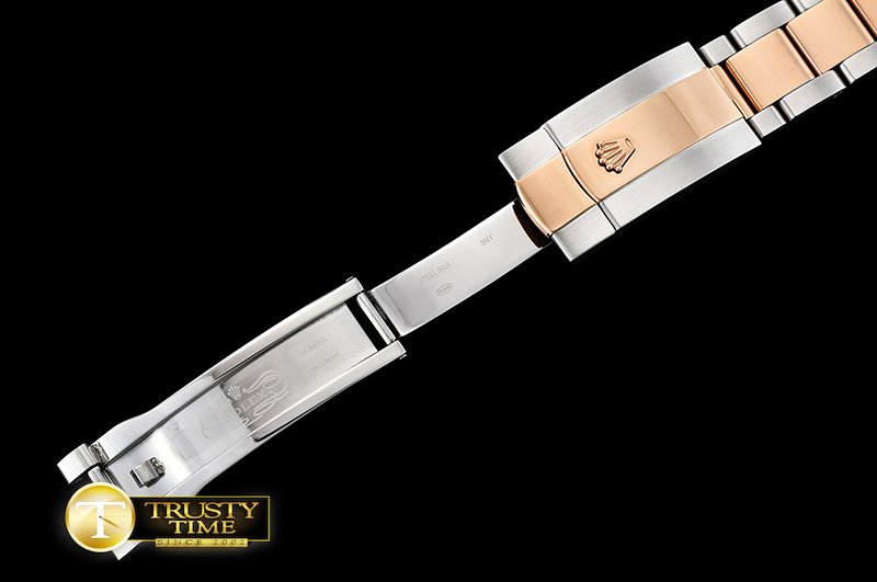 | 밴드 소재 | Two Tone 18K Rose Gold Plated (5 mils) on|고강도 스텐레스 스틸 316F (피부트러블이나부식없음) Oyster Bracelet with New Style Rolesor 폴딩형 디버클 |