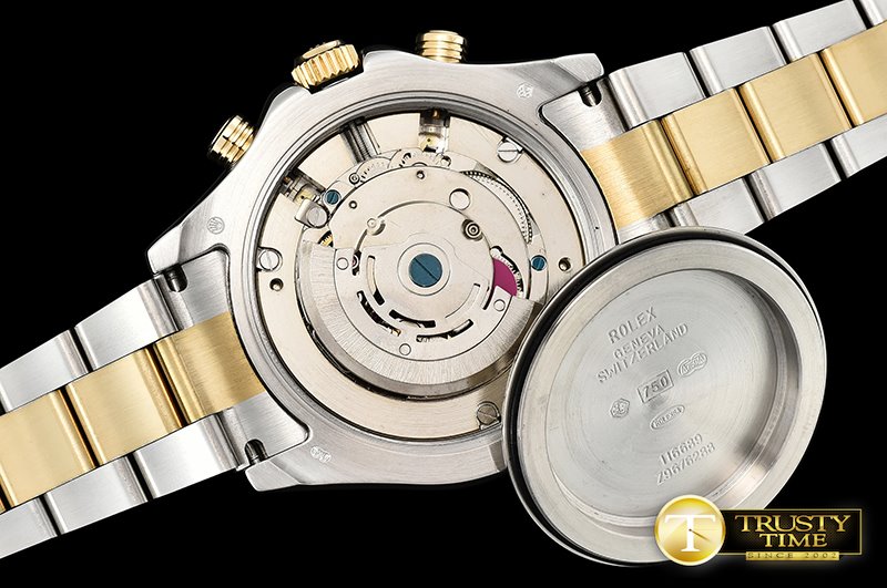 | 밴드 소재 | 18K Two Tone Yellow Gold Thick Plated (5 mils) on 고강도 스텐레스 스틸 316F (피부트러블이나부식없음) Oyster Bracelet with New Style Rolesor 폴딩형 디버클 |