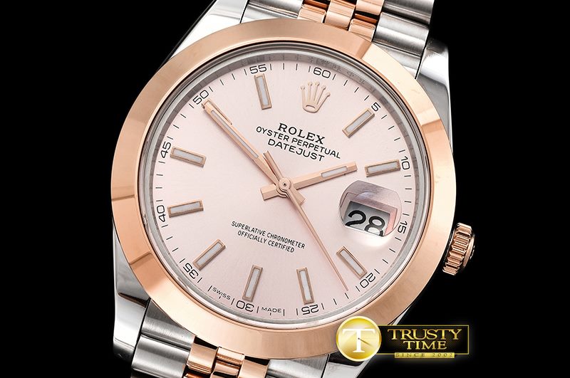 | 밴드 소재 | 18K Two Tone Rose Gold Thick Plated (5 mils) on Solid Stainless Steel 316F Jubilee Bracelet with New Style Rolesor 폴딩형 디버클 |