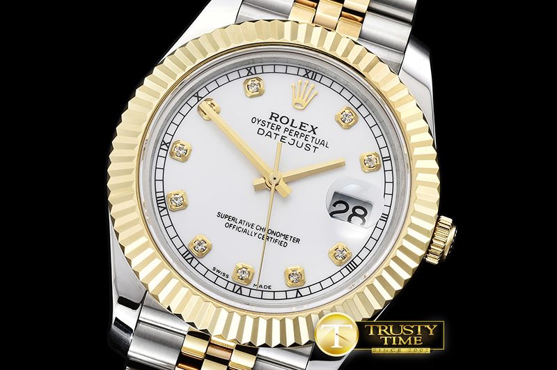 | 밴드 소재 | 18K Two Tone Yellow Gold Thick Plated (5 mils) on Solid Stainless Steel 316F Jubilee Bracelet with New Style Rolesor 폴딩형 디버클 |