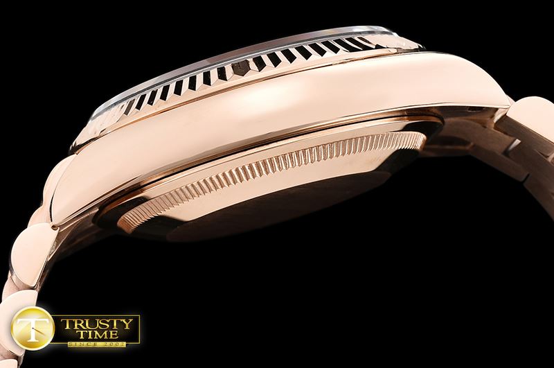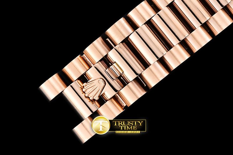| 밴드 소재 | 18K Rose Gold Thick Plated (5 mils)|on Solid Stainless Steel 316F Presidential Bracelet with New Style Rolesor 폴딩형 디버클 |